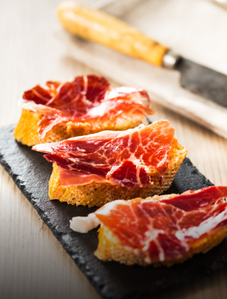 Cured for 4 years, made from the iconic free-range, purebred Ibérico pig, fed on acorns, and hand-carved slice by slice.